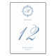 Elegant Vintage Blue Toile Monogram Wedding Tischnummer