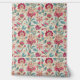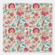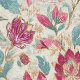This wallpaper features stylized floral motifs in deep pink and aqua, outlined in soft golden tan against a parchment-toned, woven-look background. The layout echoes vintage textile traditions with Jacobean and block print influences, offering both rich detail and soft texture. Decorative yet refined, this botanical wall pattern brings warmth and color to any space—perfect for accent walls, reading nooks, or cozy bedrooms. A timeless design for vintage-inspired or eclectic interiors.