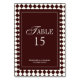 Celebrate your special day with our elegant wedding table number card template featuring a deep burgundy and ivory checkered pattern with graceful script typography. Perfect for couples seeking a vintage yet modern design, this layout blends formal sophistication with warm maroon accents. The timeless color palette and stylish lettering make it ideal for classic weddings, formal events, and romantic celebrations. Easy to customize, this template offers a graceful, polished look that captures both tradition and contemporary charm.