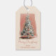 A soft watercolor Christmas tree decorated with pastel ornaments sits against a blush background for a warm, nostalgic look. The gentle brush texture and handwritten-style script give it a timeless charm that feels personal. A lovely finishing touch for holiday gifts, blending vintage elegance with modern simplicity.