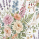 This stunning dark floral pattern features a rich arrangement of soft pastel flowers, delicate greenery, and intricate botanical details set against a deep black background. The combination of muted tones and vintage-inspired elements creates a romantic and elegant aesthetic.