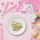 This Mother’s Day paper plate showcases an elegant china teapot and matching teacup surrounded by soft purple lilacs, all set against a white background that evokes a timeless vintage feel. The delicate floral accents and classic tea‑service details create a graceful, feminine aesthetic perfect for spring celebrations. This paper plate is perfect for a cozy family brunch, a Ladies League tea, or a special celebration honoring the women you love