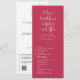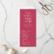 Dieses elegante Hochzeitsflach-Programm besticht durch eine elegante Kalligraphie und einen schlichten serifenlosen Typografie-Schriftart auf einem viva magenta-Hintergrund für einen puristischen, minimalistischen und modernen Look. Dies ist eine wunderbare Möglichkeit, Ihren Gästen die Reihenfolge Ihrer Hochzeitsfeier mitzuteilen. Die Einfachheit dieses Designs verleiht Ihrer Hochzeit eine Touch Eleganz. Es funktioniert gut mit vielen Hochzeitsthemen und ist definitiv eine großartige Ergänzung zu Ihrem Hochzeitsgeschenk. Einfach Namen und Formulierungen in wenigen Schritten anpassen und den QR-Code und Hashtag personalisieren, um Ihrem Programm eine angenehme persönliche Touch zu geben. Bitte beachten Sie: Die elegante Kalligraphie der Formulierungen "zu Liebe, Lachen und glücklich immer danach" zusammen mit den Zeilen und anderen grafischen Werken und Elementen kann nicht bearbeitet, gelöscht oder verschoben werden. Sie sind repariert.