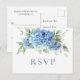 Elegant Watercolor Blue Hydrangea Wedding RSVP Postkarte