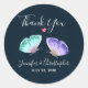 Wir bedanken uns bei den Aufklebern mit einem zarten romantischen Design. 2 elegante Schmetterlinge in Aquarellfarbe, pastellfarben lila und grün gestrichen. Ein kleines rosa Polka Punkt Herz über ihnen. Dunkelblauer Aquarellhintergrund.