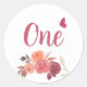 Celebrate your little one's 1st birthday with this elegant floral themed first birthday round sticker featuring text " One" along with beautiful boho style flower cluster and butterfly.