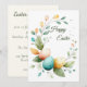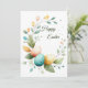 Celebrate the season with this elegant watercolor Easter card. Featuring a lush green foliage wreath and delicate speckled eggs on a soft ivory background, this design brings a touch of spring to your greetings. The interior is fully customizable, perfect for sending a personal message to grandparents, family, or friends. Premium quality stationery for a sophisticated holiday wish. Invitation