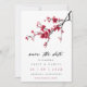 Elegant Watercolor Red Cherry Blossom Wedding Save the Date Announcement