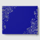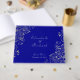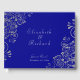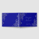 Eine schöne und elegante Art, sich an die Gäste zu erinnern, die Ihre Hochzeit und Ihren Empfang besucht haben. Auf blauem Hintergrund kaskadieren silbergraue Wirbel, Blume und Schnörkel um die Ecken und an den Seiten. Ihre Namen sind in einem stilvollen Hochzeitsskript-Schriftart. Fügen Sie Ihre Vornamen und das Hochzeitdatum hinzu. Legen Sie auch Ihre Vornamen auf den Rücken. Eine ausgezeichnete Wahl für eine klassische Winterhochzeit. Frag deinen Gästen, nicht nur ihre Namen zu unterschreiben, sondern auch ihre Ratschläge und besten Wünsche zu senden.