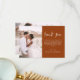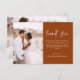 Minimalistisch Burnt Orange Wedding Dankeschön Karten, die ein Foto auf der Vorder- und Rückseite haben. Die Dankeschön-Karten enthalten eine moderne, handgeschriebene, kursive Schriftzeichen-Typografie, die elegant, einfach und modern nach Ihrer Hochzeitsfeier zu benutzen sind.