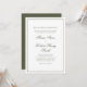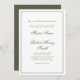 Stellen Sie Ihre Hochzeit mit zeitloser Eleganz vor und nutzen Sie diese elegante grüne Hochzeitseinladung. Mit klassischer Kalligraphie-Schrift und formaler traditioneller Typografie strahlt das Design vereinfachende Eleganz mit formaler Formulierung aus. Die schlichte minimalistische Ästhetik wird durch einen klassischen minimalen Rahmen und ein minimales Monogramm Rücken, mit einem Ampere und anfänglich mit Monogramm für eine personalisierte Touch. Diese Einladung ist sanft, romantisch und raffiniert und Set den Ton für Ihren perfekten Tag in einem schlichten und raffinierten Stil.