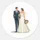 Enthält 20 kleine Aufkleber auf einem Blatt. Ein klassischer Aufkleber mit einem traditionellen Ehepaar - ein Bräutigam in einem Anzug der Marine und eine Braut in einem weißen Kleid mit Blumenstrauß.