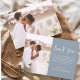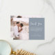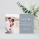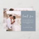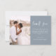 Minimalistisch Dusty Blue Wedding Dankeschön Karten, die ein Foto auf der Vorder- und Rückseite haben. Die Dankeschön-Karten enthalten eine moderne, handgeschriebene, kursive Schriftzeichen-Typografie, die elegant, einfach und modern nach Ihrer Hochzeitsfeier zu benutzen sind.