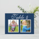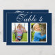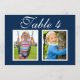 Elegante und einzigartige Tischnummer-Karten für Hochzeiten zeigen Fotos der Braut und des Bräutigams aus der Kindheit in einem Zeitalter, das mit der Tischnummer übereinstimmt. Zum Anpassen: Geben Sie in die Tischnummer ein, klicken Sie auf "Ändern", um Ihre eigenen digitalen oder gescannten Fotos hochzuladen, und fügen Sie diese individuelle Tischnummer-Karte in Ihren Warenkorb ein. Wiederholen Sie die Schritte für alle Tischnummern, die Sie benötigen. Weißes Skript benutzerdefinierter Text auf einem marineblau (kann angepasst werden) Hintergrundfarbe.
