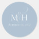Elegant Wedding Minimalistisch Monogram Dusty Blue Runder Aufkleber