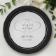 Das elegante Hochzeitsdesign in Schwarz und Weiß weist einen Rahmen in elegantem Schwarz auf, der eine kleine weiße Grenze in knusprigem Weiß mit einem schicken Dekor aufweist. "Herr & Mrs." wird in stilvoller Kalligrafie vorgestellt, wobei zwei verflochtene Herzen die Vornamen des Paares tragen, die auf einem knackigen weißen Hintergrund angeordnet sind. Personalisieren Sie die Vorlage Hochzeitsdetails mit Ihren Namen und Hochzeitsdatum in Holzkohle graue Schrift und Schrift. Ideal für Ihren Empfang! Achten Sie auch auf die koordinierenden Servietten und Untersetzer!