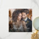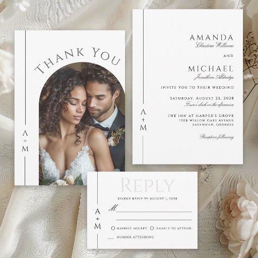 An elegant wedding photo thank you card in a unique square shape. It has a sample thank you message on the back of the card that you can edit or use as written and simply personalize with your names. Load a favorite photo in place of the sample photo shown in the design template. Square photos work best in this layout. This card is a wonderful way to share a favorite wedding photo with your friends and family who attended your wedding or sent a gift.