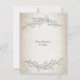 Eine elegante Hochzeitskarte, die mit weichen Blätter und schwarzem Schriftzeichen gestaltet wurde. Der erste Text enthält: Die ersten Namen des Ehepaares, das Hochzeitdatum und den Ort der Hochzeit. Der umgekehrte Text enthält: Förmliche Aufforderung zum Befolgen. Um Ihre persönlichen Daten zu personalisieren, geben Sie einfach Ihre Daten in unsere Vorlage ein und ersetzen Sie das Beispiel.