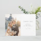 This is a romantic style image featuring a newlywed couple standing together in front of a charming church, bathed in the warm glow of golden hour sunlight. The bride holds a beautiful bouquet of soft pastel flowers, complementing her elegant gown, while the groom stands by her side in a classic black suit with a boutonniere matching her bouquet. Their joyful expressions and close embrace convey love and happiness. The card includes heartfelt text expressing gratitude from "Mr. & Mrs. Thompson," dated June 6, 2025. It's perfect for sending to guests as a token of appreciation after a wedding, capturing the essence of their special day.