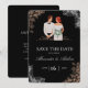 An elegant wedding invitation featuring a romantic illustrated couple framed by delicate florals on a dark, sophisticated background. Perfect for classic, modern, or romantic wedding themes. Fully customizable with your names, date, and event details.