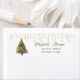 Eleganter Weihnachtsbaum und Saitenleuchten auf weißem Hintergrund. Ein elegantes und raffiniertes Design. Passen Sie Ihre Namen und Adressdaten an.