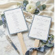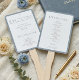 Introduce your wedding party in style with this classic blue fan program. This fan provides a beautifully organized space to list all the important people who stand by your side on your big day. The serene blue hue adds a touch of sophistication, while the clear layout ensures all names are easily readable. It’s a thoughtful way to honor your wedding party and provide your guests with a lovely keepsake.