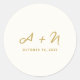 Ein einfacher, aber eleganter Wedding Classic Round Sticker mit einem Whimsical Gold Script Monogram. Dieser Rundaufkleber kann für Event-Favoriten oder Umschläge verwendet werden.