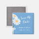Elegant White Daisies Blue Save the Date Wedding Magnet