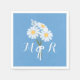 Elegant White Daisies on Blue Monogram Wedding Serviette