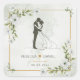 Elegant White Floral Bride and Groom Wedding Quadratischer Aufkleber