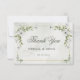 An elegant wedding photo thank you card featuring soft white flowers, delicate greenery, and a refined gold frame for a timeless romantic look. The airy botanical details beautifully surround your favorite wedding photo, creating a polished design that is perfect for formal celebrations, garden weddings, and coordinated wedding stationery suites. A beautiful choice for couples who love soft floral wedding accents with a fresh, classic, and sophisticated feel. This card is a lovely way to share heartfelt thanks while showcasing a special moment from your wedding day.