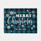 Modernes, personalisiertes Weihnachtsbaumdesign mit eleganten handgeschriebenen Schriftzeichen, kariertem Schwarz-Blau-Hintergrund, niedlichen weißen Schneeflocken. Ein perfektes Weihnachtsgeschenk für neue Hausbesitzer oder Neuvermählte.