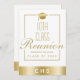 Schicken Sie Ihren 10. Klasse Wiedersehen-Klassenkameraden unsere moderne Einladung mit einer Flachkarte. Dieses elegante Design-Template verfügt über einen weißen und glänzenden goldfarbenen Hintergrund mit Imitaten goldenen Typografie, die "10th Class Wiedersehen" mit Ihrem Schulnamen und Jahr zu personalisieren Unten ist die Monografie Ihrer Schule. Die Rückseite der Karte enthält mehr von Ihren Feierlichkeiten Details, die Sie anpassen können. Entworfen von ©Tim Coffey und Susan Coffey.