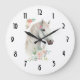 Eine Uhr mit einer magischen Illustration eines schönen weißen Pferdekopfes. Umgeben von niedlichen kleinen rosa Blume. Boho elegantes Ambiente für Pferdefreunde.