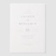 This elegant wedding invitation features a minimalist design with a monochromatic color palette, utilizing black text on a clean white background. The layout is vertically oriented with centered alignment, creating a balanced and formal appearance. Serif fonts are used throughout for a classic touch, emphasizing the names and event details while maintaining readability. The ample negative space enhances sophistication, making it perfect for couples seeking a timeless and refined look for their special day.