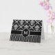 Elegantes, weißes, blumenfeuerförmiges Muster auf schwarzem Hintergrund.