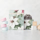 Die magische Schönheit der eleganten Poinsettias ist Teil der Spezialität der Weihnachtszeit. Dieses hübsche Muster besteht aus eleganten, weißen und rosa Poinsettien in Vintagen Aquarellfarben, die mit Grün und roten Beeren mit einem passenden hellgrünen Hintergrund vermischt sind.
