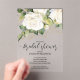 A clear acrylic bridal shower invitation features white roses, green and gold leaves with your details in chic lettering. MATCHING items in our collection.