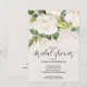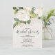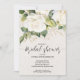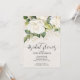 A bridal shower invitation features white roses, green and gold leaves on a cream linen pattern with your details in chic lettering and room to add additional information on the back. MATCHING items in our collection.
