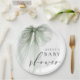 Complete your sophisticated party theme with these elegant, personalized baby shower paper plates. The design features the collection's signature, ethereal watercolor bow in a trending sage green hue, set against a clean white background. Easily customize the text with the mother's name, making it a perfect complement to your gender-neutral or rustic-chic baby shower decor. These paper plates are an essential detail for a beautiful, cohesive table setting.