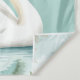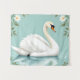 Elegant white swan swimming on water with flowers on pale blue background design.