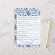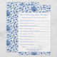 Brautparty-Spiel "How Do You Know The Bride" in einem eleganten, blau-weiß antiken Chinoiserie-Muster. Der gesamte Text ist vollständig an Ihre Bedürfnisse angepasst.