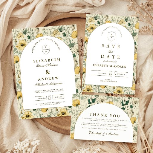 Elegant Wildflower Arch Minimal Wedding RSVP Karte