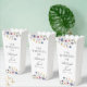 Pretty wildflowers decorate the bottom of this colorful spring wedding popcorn favor box. Watercolor floral borders are perfect for a garden ceremony outdoors while flowers are in bloom. Elegant script dances above a beautiful orange, purple, yellow, and blue botanical meadow on this custom favor or newlywed gift.