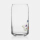 Pretty wildflowers decorate the bottom of this colorful spring wedding can glass for reception table decor. Watercolor floral borders are perfect for a garden ceremony outdoors while flowers are in bloom. Elegant script dances above a beautiful orange, purple, yellow, and blue botanical meadow on this custom favor.
