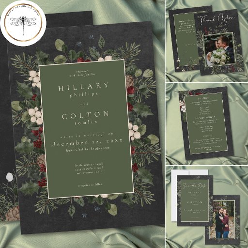 Elegant Winter Berries & Pine Black WeddingDesignt von Kathe Santillo