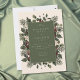 Introducing our enchanting winter wedding invitation, where timeless elegance meets the beauty of the season. The rich ivory cream background, softly distressed with white accents, sets a captivating tone for your special day. In the dark sage green text area, your wedding details stand out, surrounded by a delicate cream frame that adds a touch of refinement. Embrace the spirit of winter with a breathtaking frame of lush greenery, featuring holly adorned with rich red berries, mistletoe with its delicate white berries, and the timeless allure of green pine. Created by Simply Farmhouse Press.