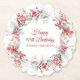 Ein schöner und eleganter personalisierter Untersetzer aus Papier, der speziell für eine 90. Geburtstagsfeier entworfen wurde. Es verfügt über einen Aquarellkranz aus roten Beeren, eingebettet in schläfengrünes Blattwerk. Zwei Zeilen sind für ein individuelles Dankeschön und den Namen des Geburtstags vorgesehen. Dieser Artikel ist Teil der Winter Berry Collection.