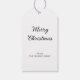 A graceful deer stands among pine branches and snow, framed by soft blue-gray tones and subtle gold accents. The painterly style and muted palette create a calm, refined look that feels both natural and sophisticated. A beautiful way to bring a touch of quiet winter luxury to your holiday gifts. Easily personalize the message and name on the back of the tag with just a few clicks.