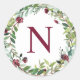 Elegant Winter Greenery Burgundy Monogram Wreath Runder Aufkleber